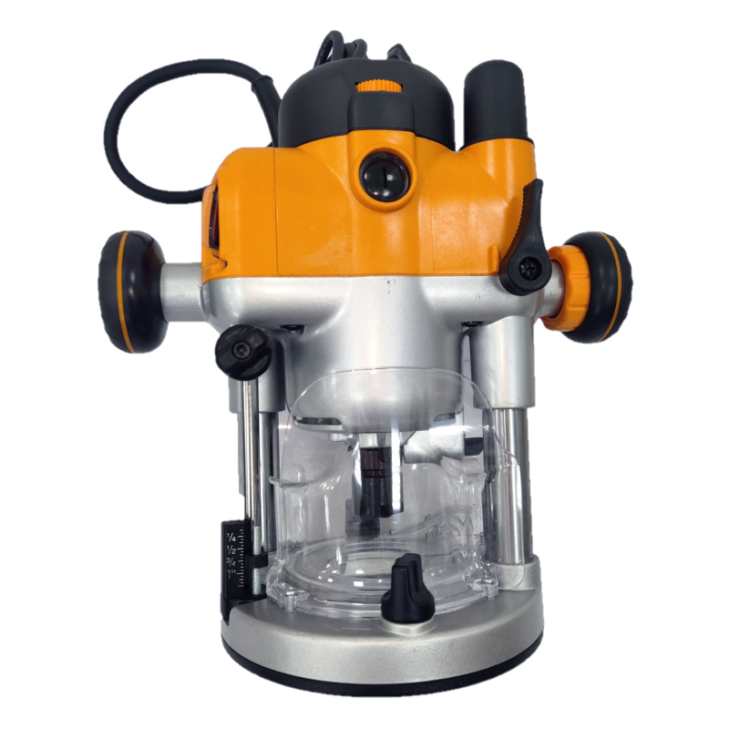 The router is a power tool with a flat base and a rotating blade extending past the base. The spindle is driven by an motor directly. They may be handheld or affixed to router tables.